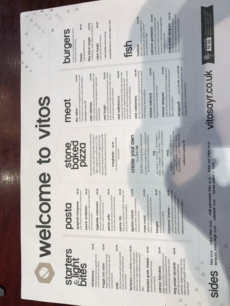 . View the Vitos Italian Restaurant menu read Vitos Italian Restaurant reviews and get Vitos Italian. Friday Saturday 11 am 10 pm. Welcome to Vitos Trattoria located in the heart of.